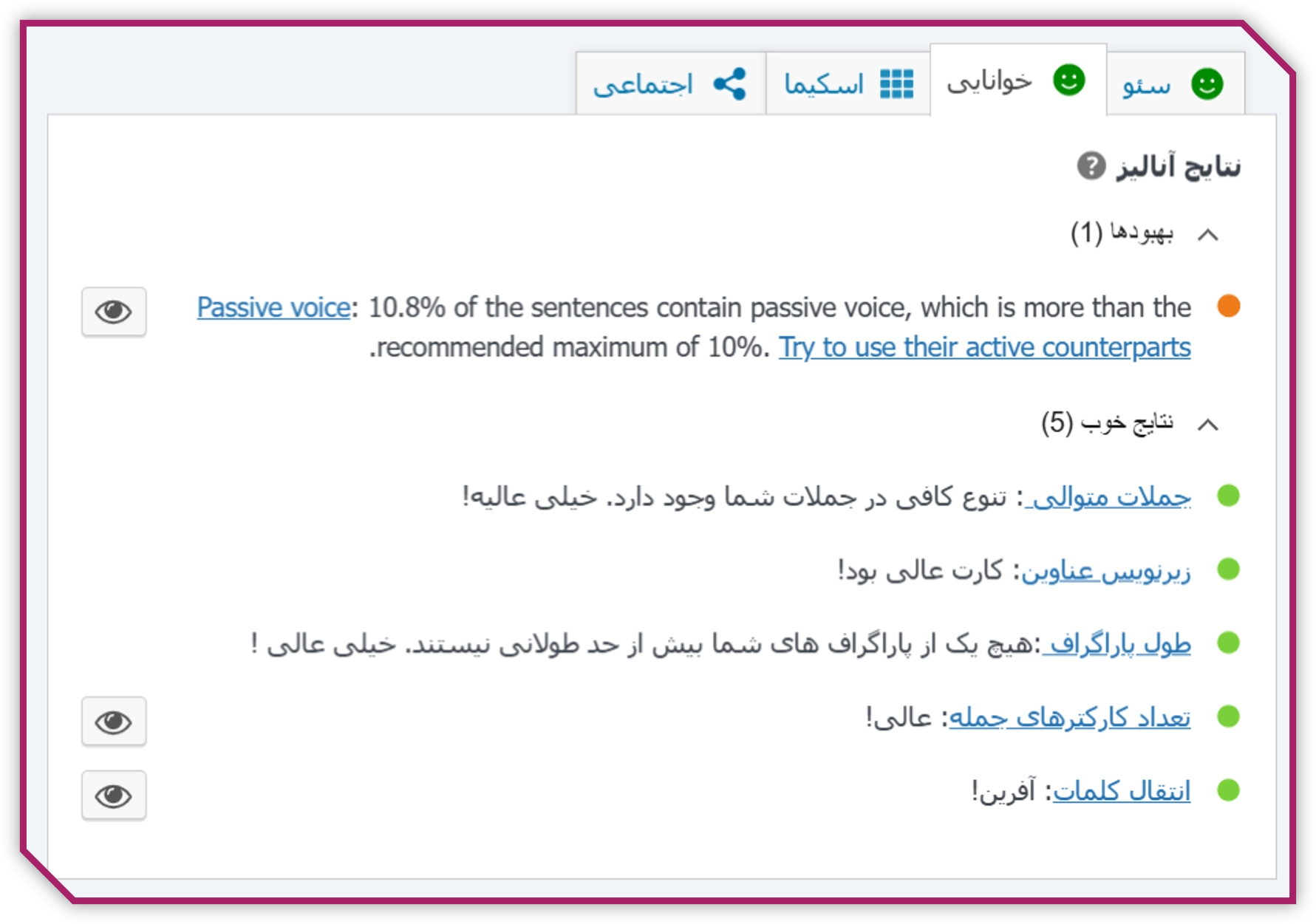 بررسی محتوای شما از نظر ساختار جمله، پاراگراف بندی، تعداد کلمات و سطح درک مخاطب.
