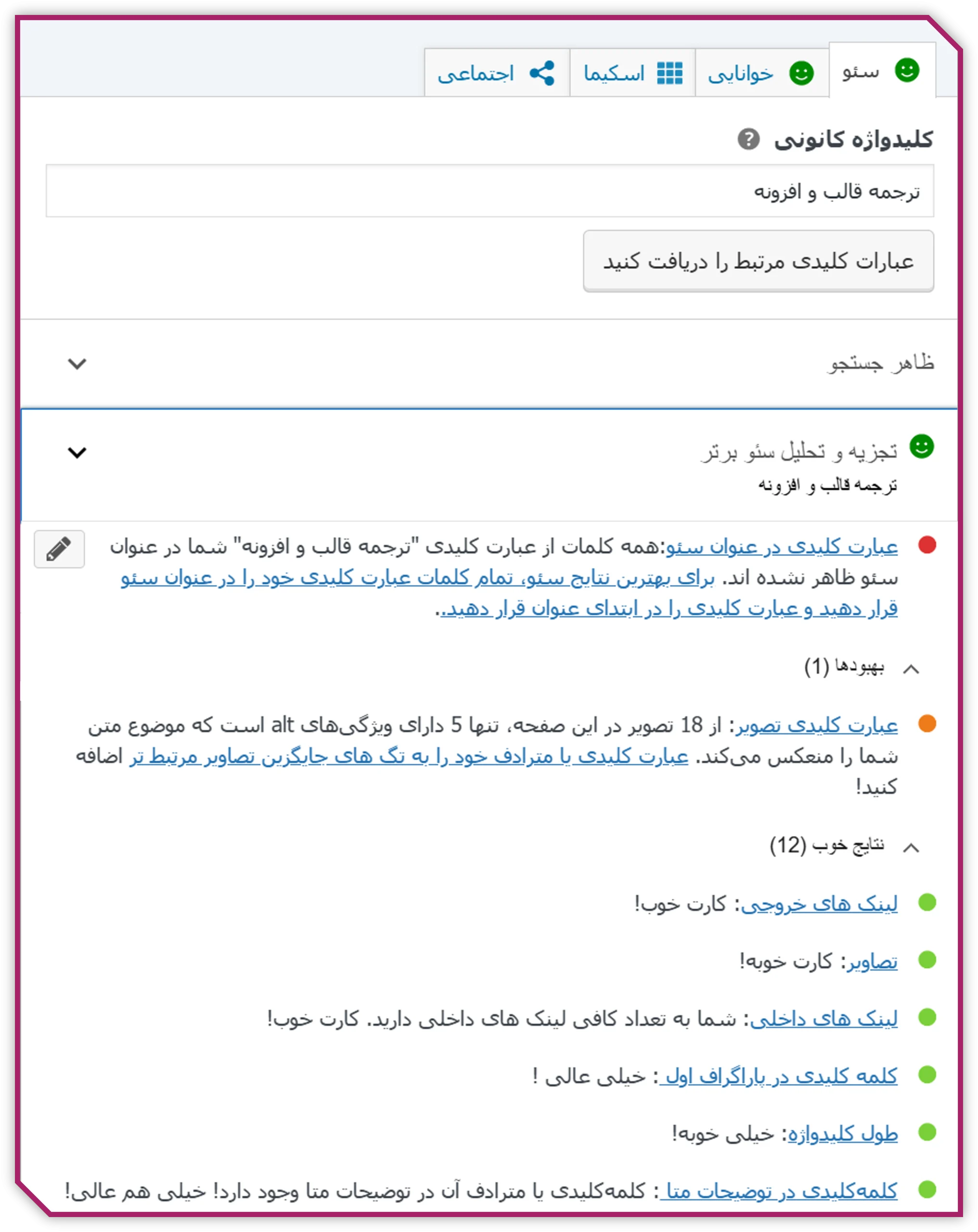 امکان درج چندین عبارت کلیدی در یک محتوا برای پوشش بیشتر در نتایج جستجو.